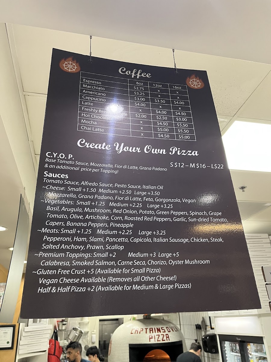 Introducing the Menu at Captain's Oven Pizza Surrey
